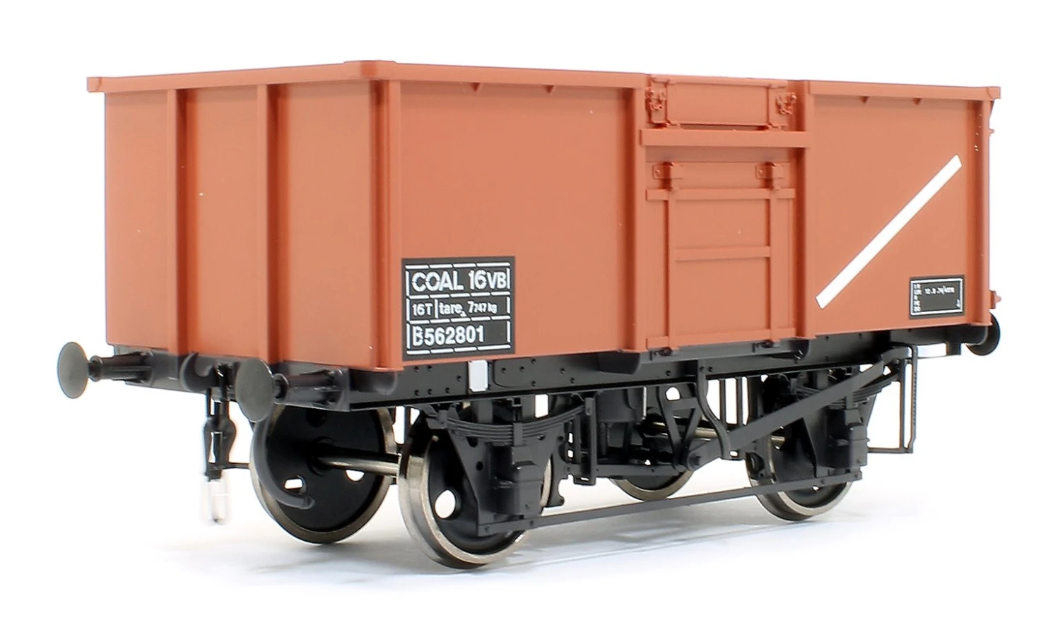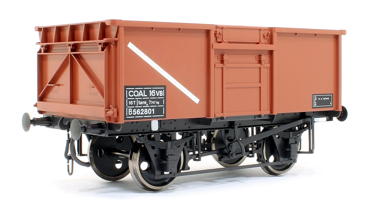 The 16 ton mineral wagon was a product of wartime when the requirement for coal soared and e orts were made to transport it more efficiently. Prior to wartime most coal was transported in wooden open wagons with a maximum loading of 12 tons. The all steel construction allowed a 33% increase in load and as a consequence these wagons proved extremely popular.