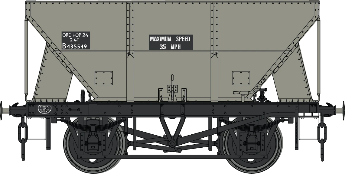 Charles Roberts built 1,000 22 ton hopper wagons to Diagram 161 in 1949, and a year later 1,500 were built to Diagram 1/162 uprated to 24 tons. These were built by Charles Roberts, and Cambrian with Birmingham upgrading 500 of the 22 ton 1/161 wagons. They were initially used for iron ore traffic and latterly Limestone, chalk and sand.