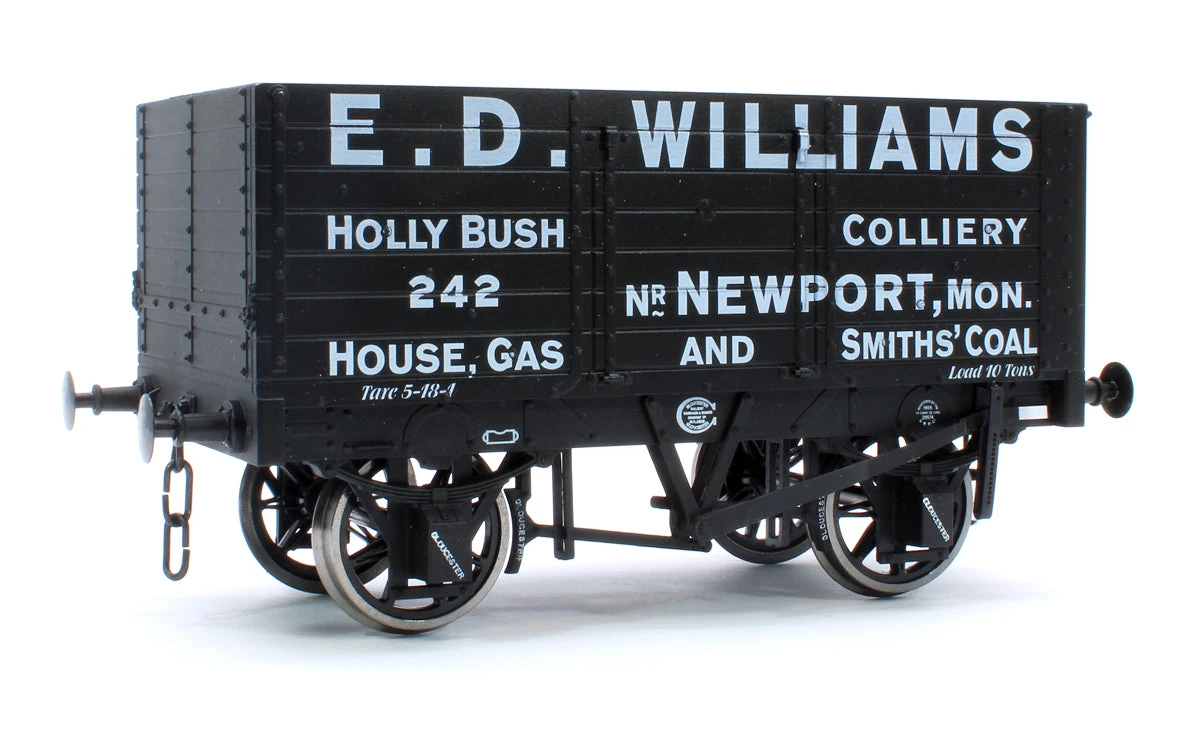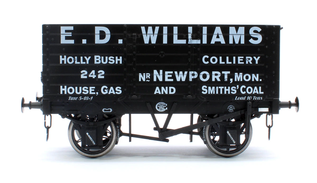 These model 5 Plank Wagons are modelled on two designs, one based on a 9′ wheelbase with a capacity of 10 tons and one based on a 10′ wheelbase with a 12 ton capacity.