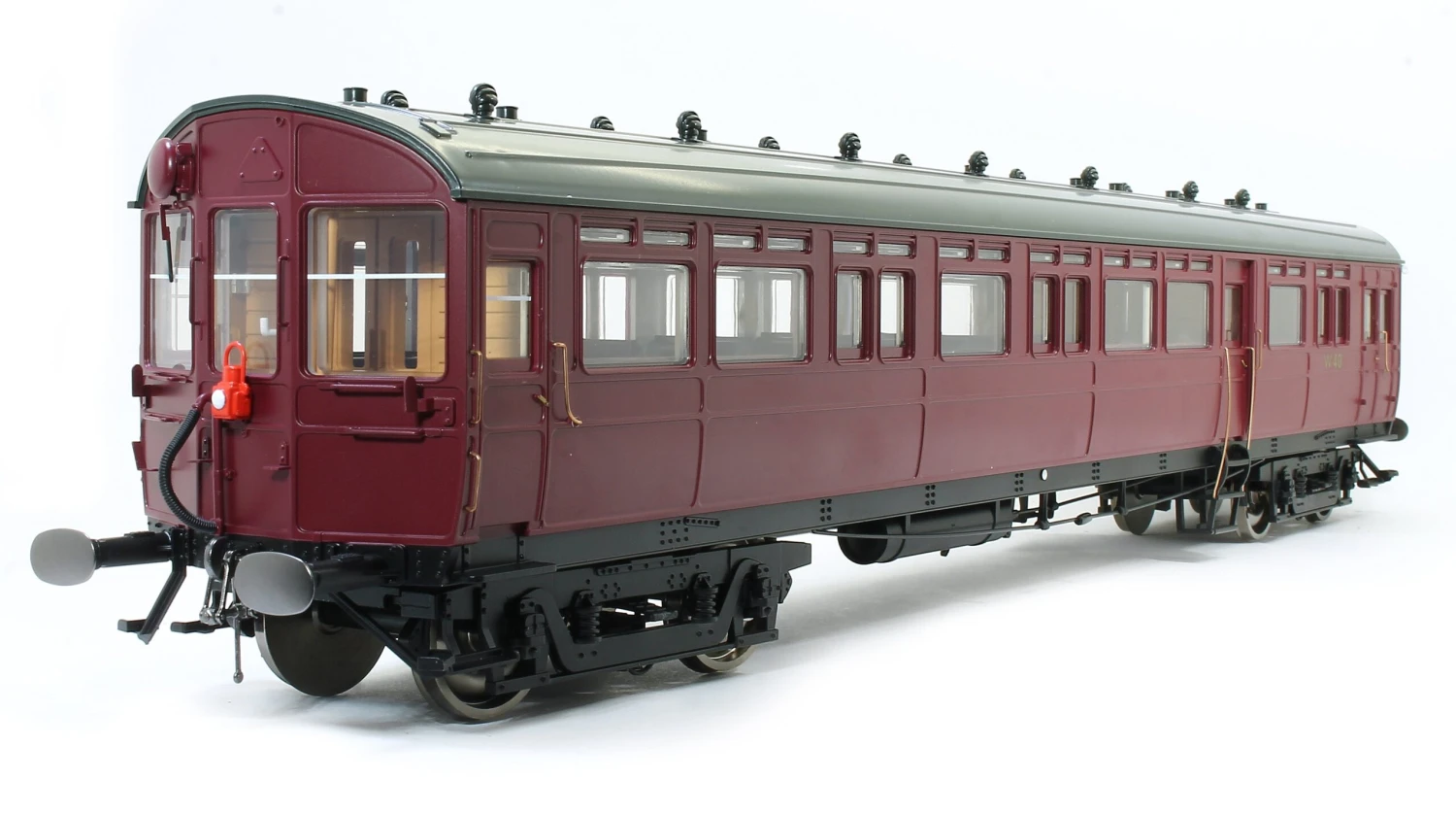 Our model is based on the six coaches numbered 36 to 41 constructed during 1907 under Lot 1126 to Diagram ‘N ’. All were built new as driving trailers and not later conversions from old steam rail motors. Their short length of 59ft 6 inch long coupled to one of our 64xx pannier tank locomotives has a total length of only 26 in, perfect for limited space layouts. They were used on branch lines from Cornwall to Wales and retained their gas lighting until withdrawn, the first in 1956, the last in November 1957. Number 38 is preserved on the Telford Steam Railway