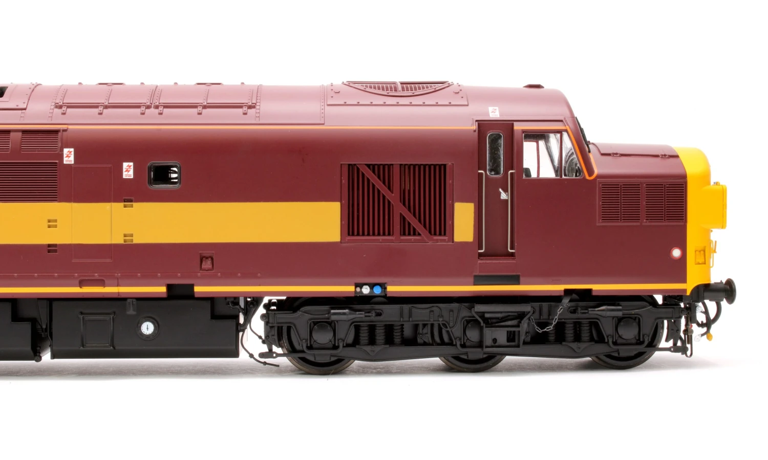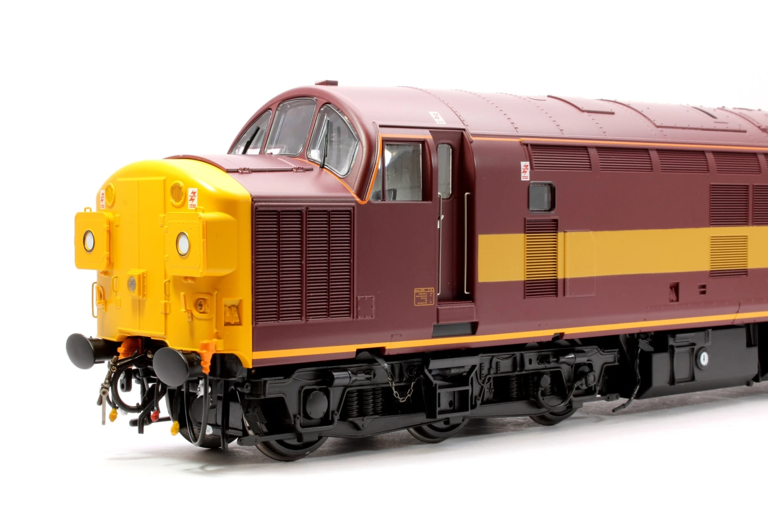 In response to customer demand, this latest variant of Heljan’s O Scale Class 37/0 depicts the original 118 locomotives with split headcode panels and post-1970s cutaway bufferbeam cowlings. Our updated model features a number of improvements over earlier releases, including sharper detail, a plug-and-play DCC interface, switchable interior and exterior lighting and a wider choice of detail options. Models will be available with several nose end arrangements, with or without steam heating boiler ports, high-intensity headlights and with either cast or fabricated bogies according to livery and period. First releases will feature split headcode locomotives, but the later-built centre headcode version is also in development and will be released in a wide range of versions and liveries covering the 1970s through to the present day.