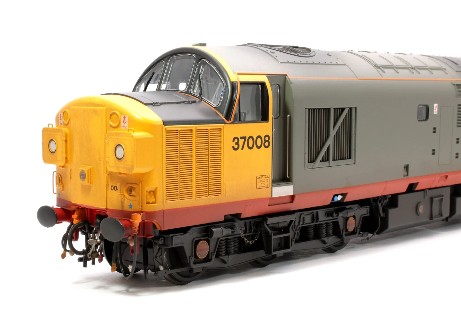 In response to customer demand, this latest variant of Heljan’s O Scale Class 37/0 depicts the original 118 locomotives with split headcode panels and post-1970s cutaway bufferbeam cowlings. Our updated model features a number of improvements over earlier releases, including sharper detail, a plug-and-play DCC interface, switchable interior and exterior lighting and a wider choice of detail options. Models will be available with several nose end arrangements, with or without steam heating boiler ports, high-intensity headlights and with either cast or fabricated bogies according to livery and period. First releases will feature split headcode locomotives, but the later-built centre headcode version is also in development and will be released in a wide range of versions and liveries covering the 1970s through to the present day.