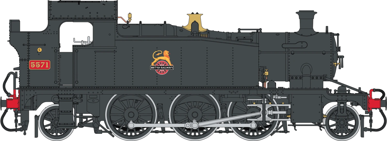 They were designed as small mixed traffic branch locomotives, mainly used on branch lines. They were a development of Churchward’s 4500 Class with larger side tanks and increased water capacity.100 were built between 1927–1929 at the GWR Swindon Works and were numbered 4575-4599 and 5500-5574. Fifteen locomotives were fitted with auto apparatus in 1953 to enable them to run push-pull trains on South Wales lines with auto trailers.