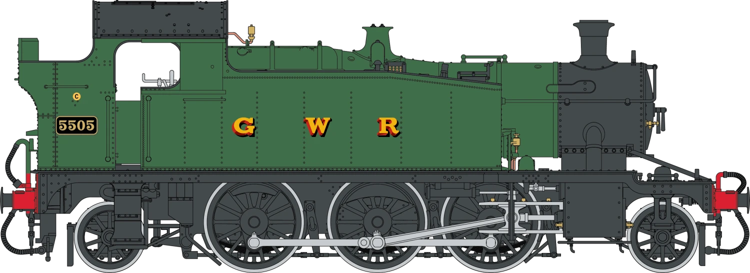 They were designed as small mixed traffic branch locomotives, mainly used on branch lines. They were a development of Churchward’s 4500 Class with larger side tanks and increased water capacity.100 were built between 1927–1929 at the GWR Swindon Works and were numbered 4575-4599 and 5500-5574. Fifteen locomotives were fitted with auto apparatus in 1953 to enable them to run push-pull trains on South Wales lines with auto trailers.