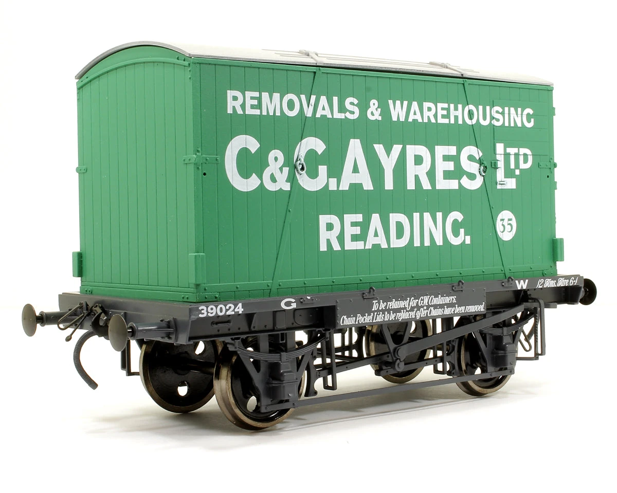 Containers and the special wooden decked conflat wagons used to convey them were produced in great numbers by all four of the railway companies. They allowed door to door deliveries via road, rail and road again without the requirement for the good to be handled at each leg. In the main they were used for furniture removal, although some were built with insulation for refrigerated use. Post nationalisation BR built over 10,000 containers which continued into service until the arrival of the modern standard ISO containers in the 1960s.