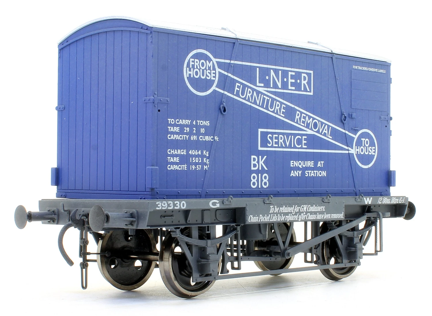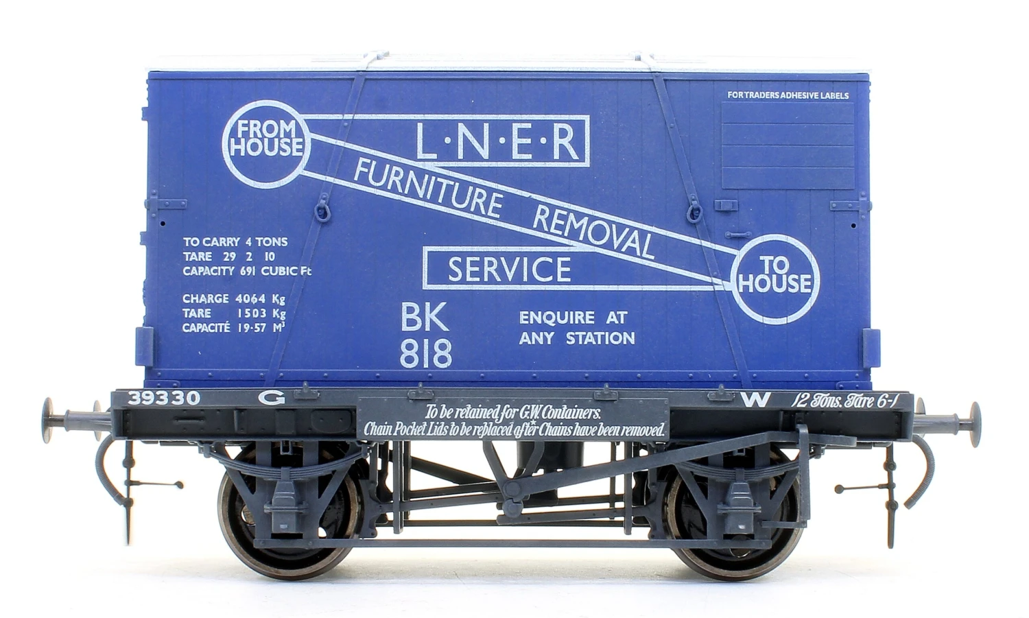 Containers and the special wooden decked conflat wagons used to convey them were produced in great numbers by all four of the railway companies. They allowed door to door deliveries via road, rail and road again without the requirement for the good to be handled at each leg. In the main they were used for furniture removal, although some were built with insulation for refrigerated use. Post nationalisation BR built over 10,000 containers which continued into service until the arrival of the modern standard ISO containers in the 1960s.