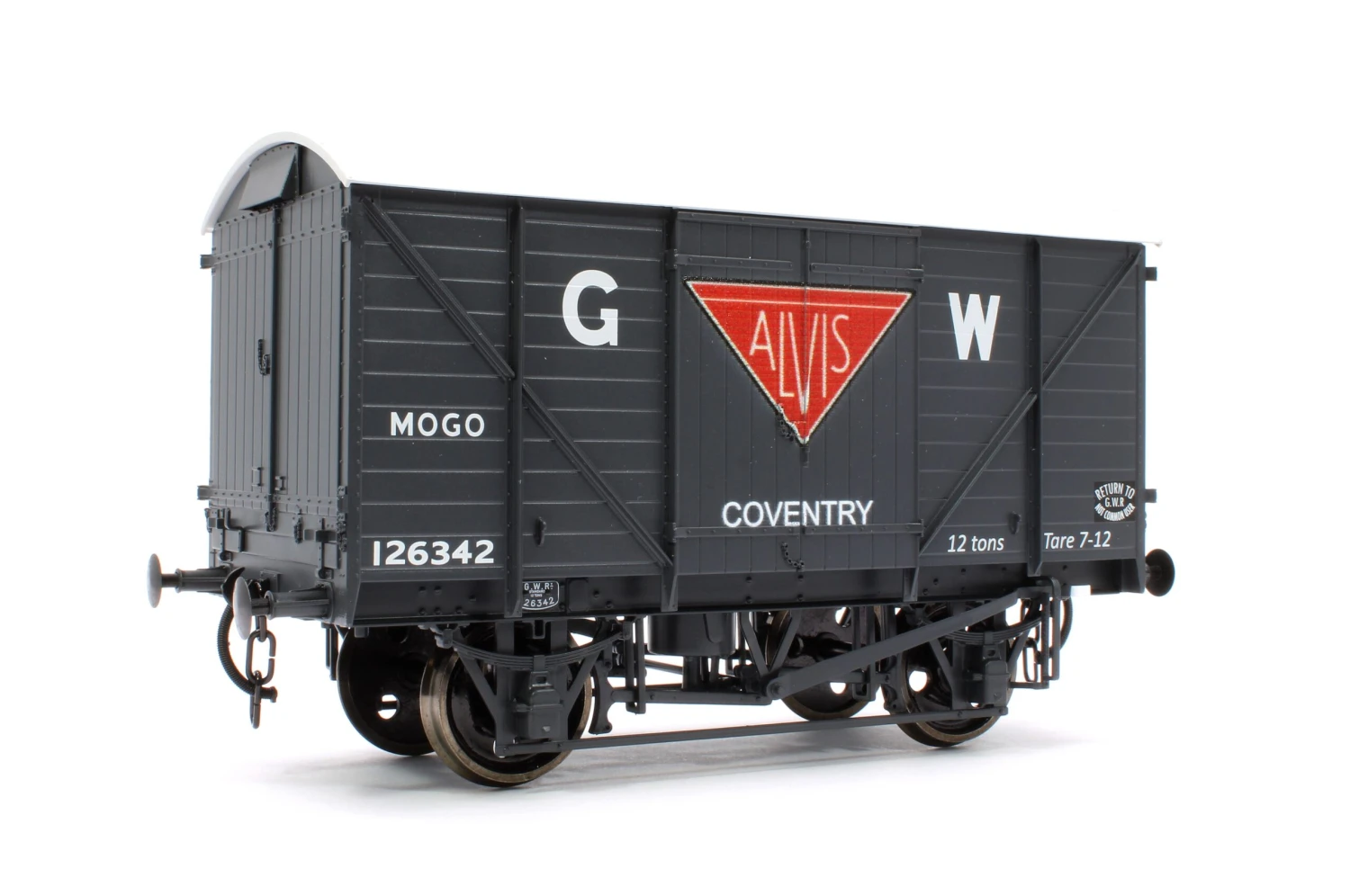 1:43 Scale 12t Mogo Wagon decorated in Alvis livery. This model features lots of expertly applied details as based on the prototype, a high level of body detail and excellent running characteristics.