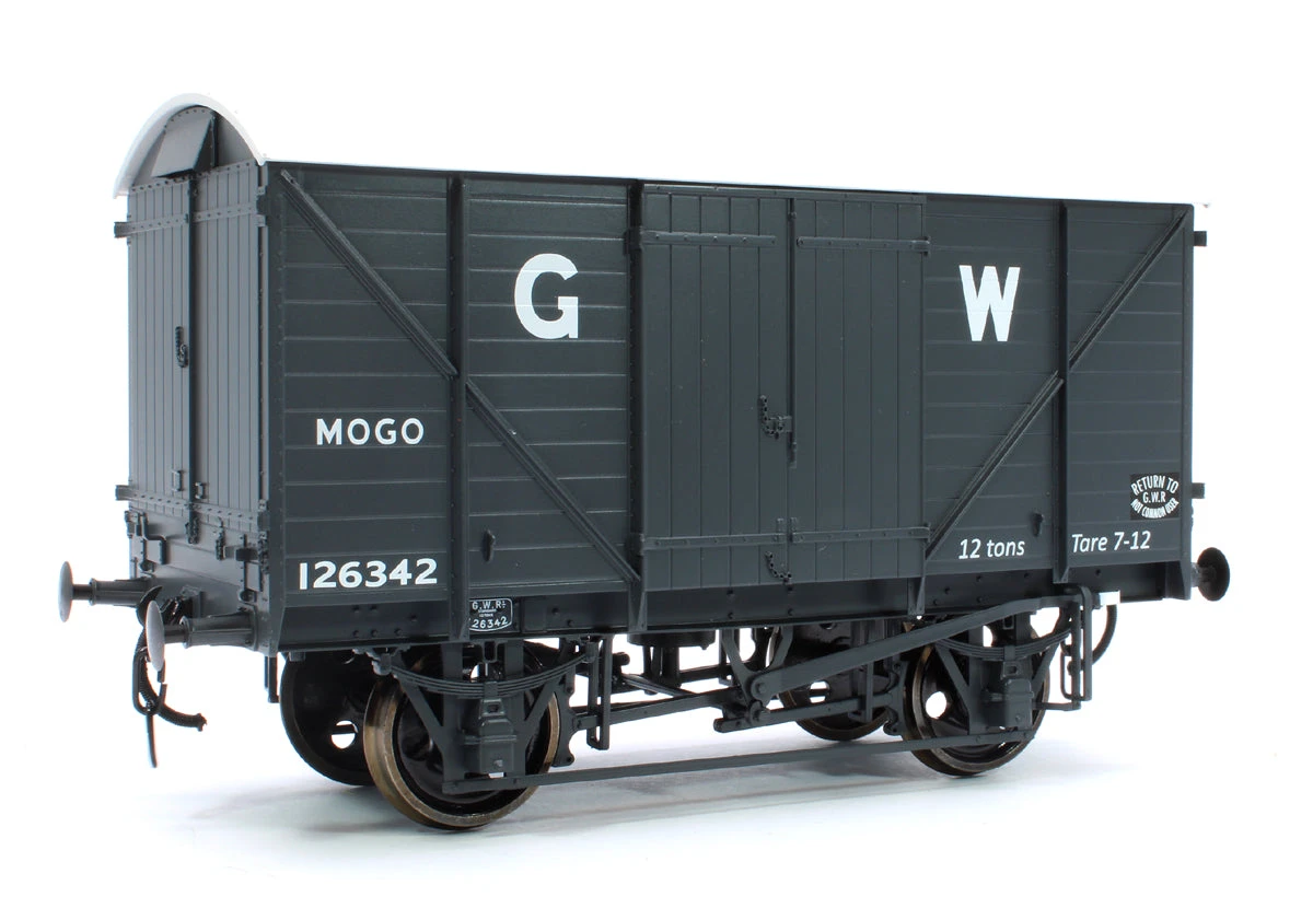 The MOGO had a 12-ton capacity and is fitted with end doors and wheel bars to allow a motor car to be loaded and transported in a goods train, hence its telegraph code ‘MOGO’. The early MOGO vans had planked bodies but were later constructed with ply body sides.