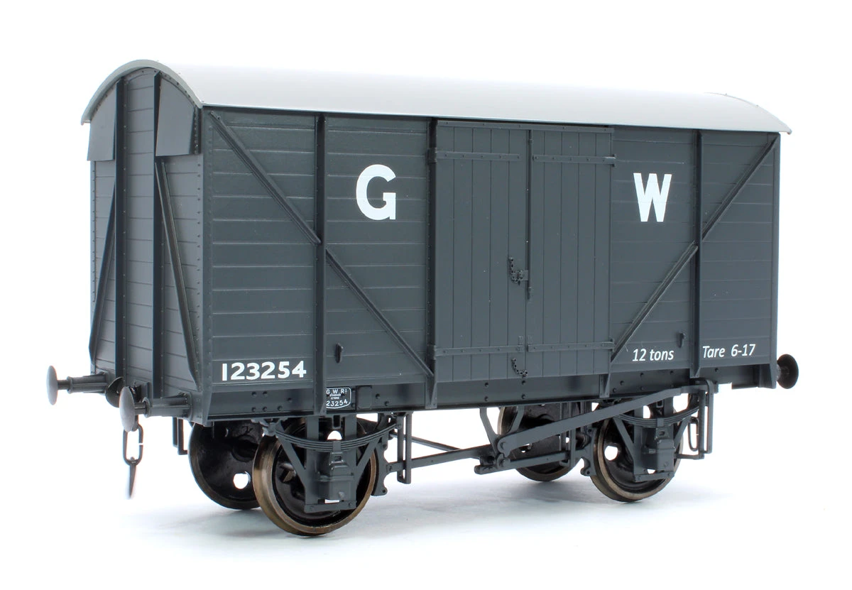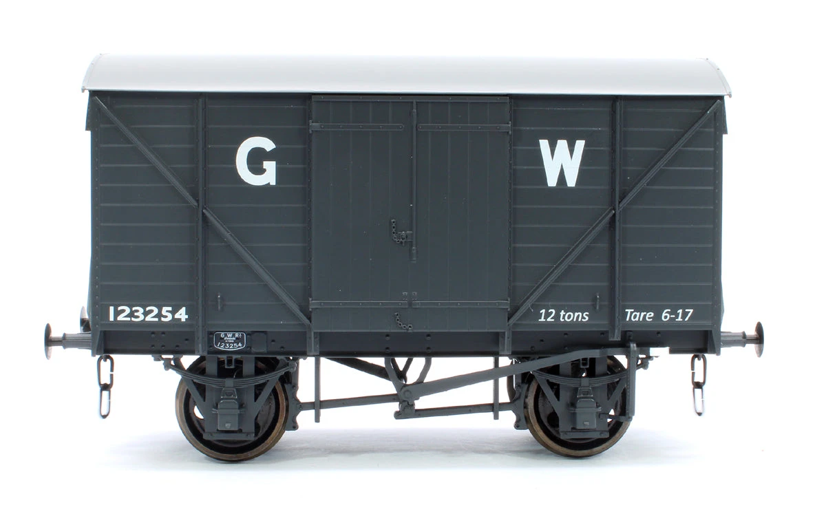 The adoption of the RCH 17’-6” underframe for the 12 Ton van in1927 coincided with a change in door design to vertical planking, and after 1932 the 10’-0” wheelbase was used, which the Dapol models replicate. Between 1933 and 1943 more than 8,500 vans were built both Vacuum and non-vacuum fitted to Diagram V23/V24 with a further 265 constructed between 1935 and 1939 to Diagram V26 code named ‘Parto’, With internal partitions to protect loads from damage.