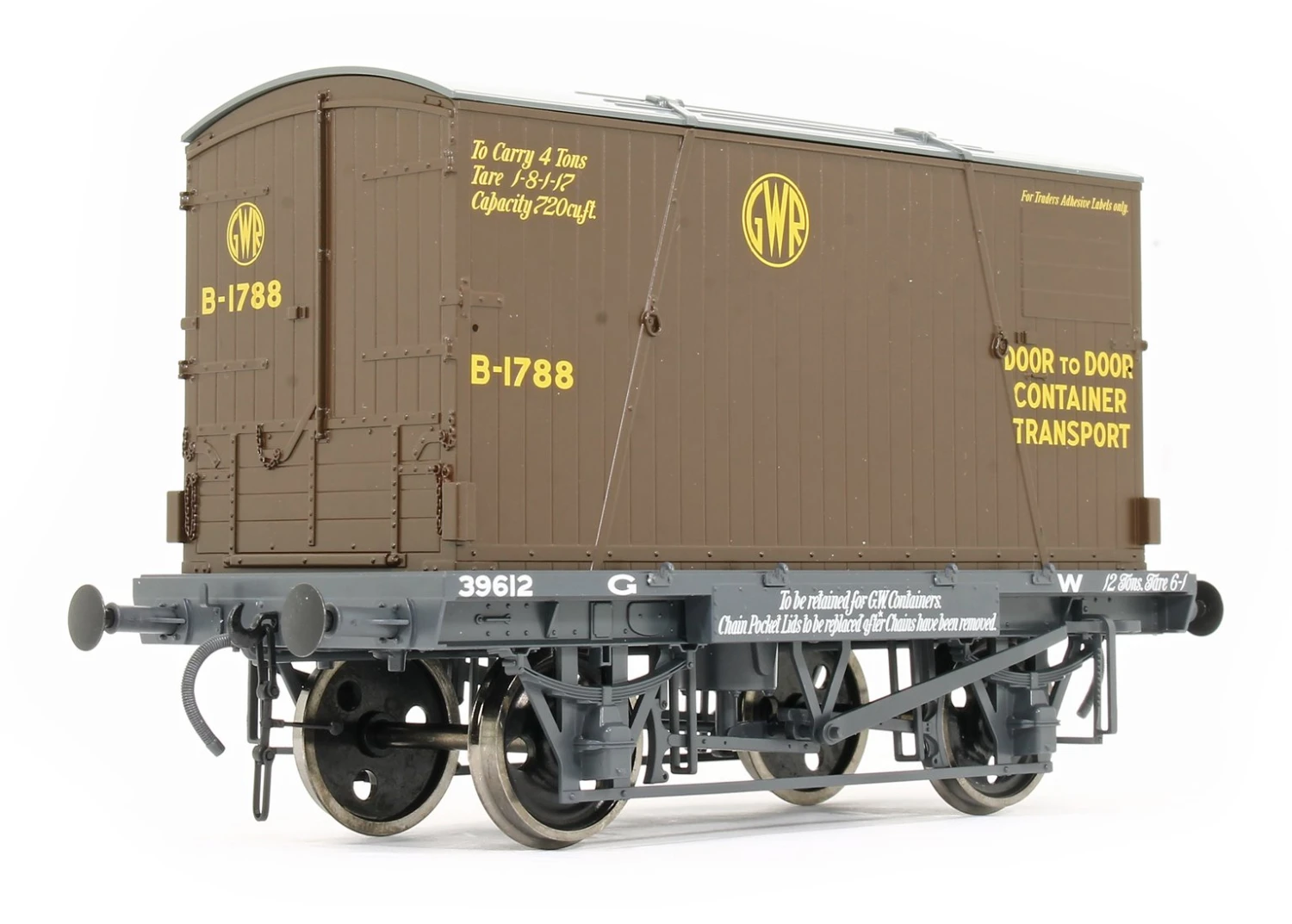 Containers and the special wooden decked conflat wagons used to convey them were produced in great numbers by all four of the railway companies. They allowed door to door deliveries via road, rail and road again without the requirement for the good to be handled at each leg. In the main they were used for furniture removal, although some were built with insulation for refrigerated use. Post nationalisation BR built over 10,000 containers which continued into service until the arrival of the modern standard ISO containers in the 1960s.