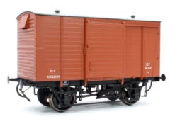 The adoption of the RCH 17’-6” underframe for the 12 Ton van in1927 coincided with a change in door design to vertical planking, and after 1932 the 10’-0” wheelbase was used, which the Dapol models replicate. Between 1933 and 1943 more than 8,500 vans were built both Vacuum and non-vacuum fitted to Diagram V23/V24 with a further 265 constructed between 1935 and 1939 to Diagram V26 code named ‘Parto’, With internal partitions to protect loads from damage.