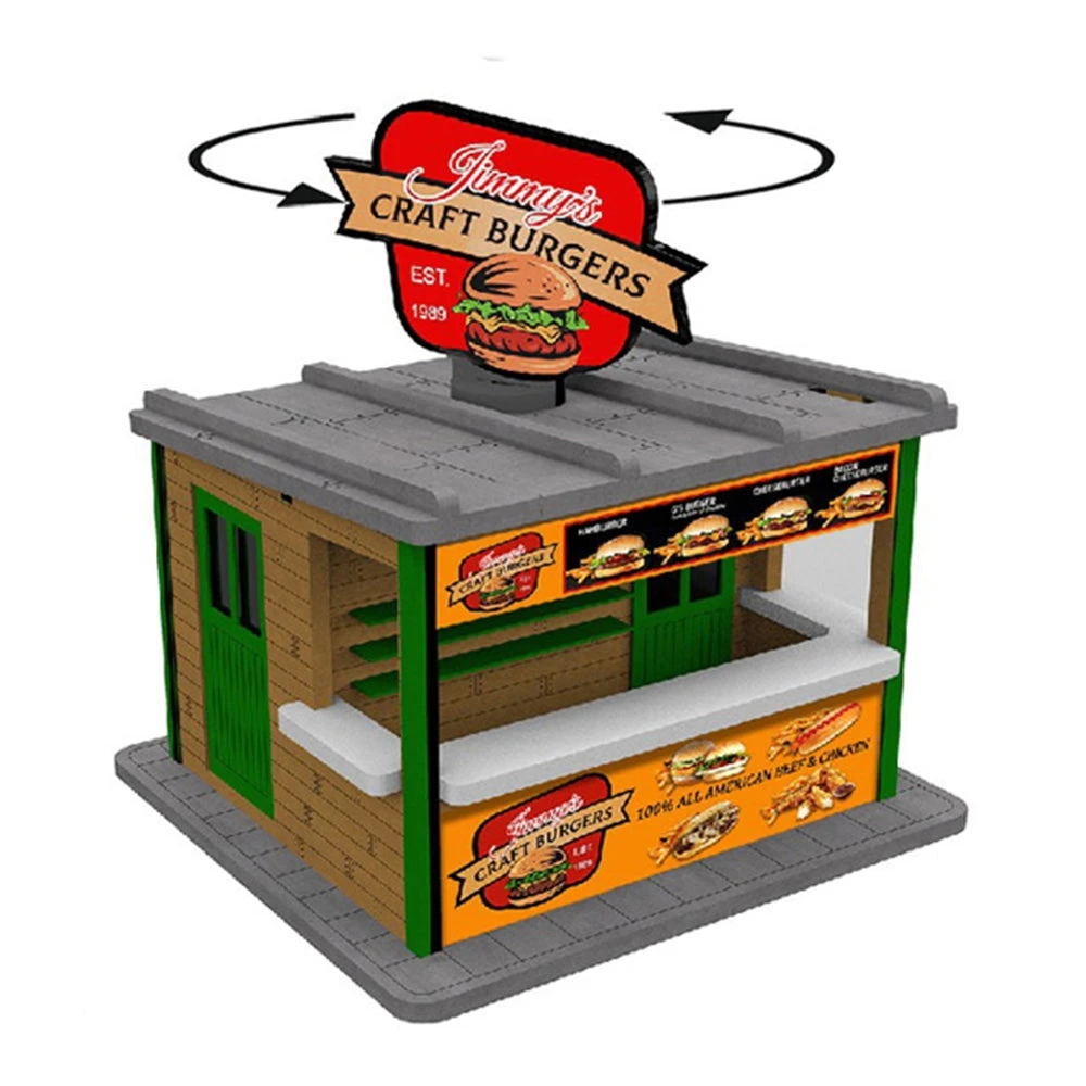 O Scale Jimmy’s Burger Booth W/Rotating Banner And Illumination