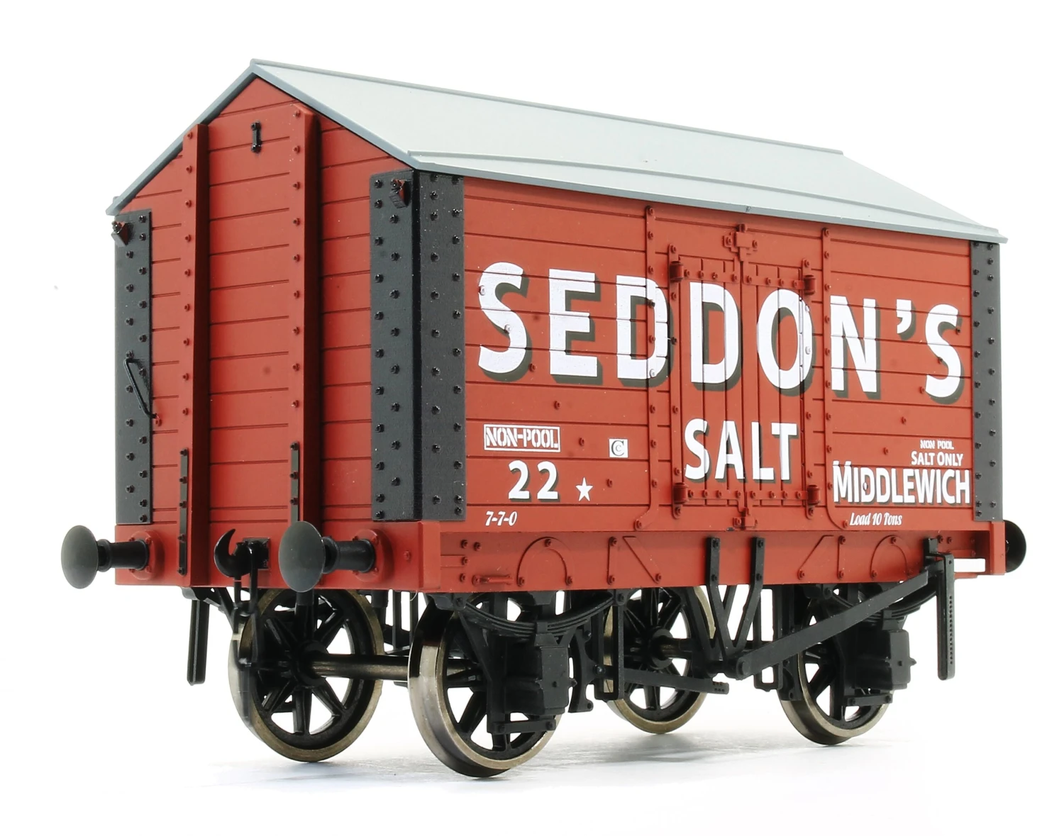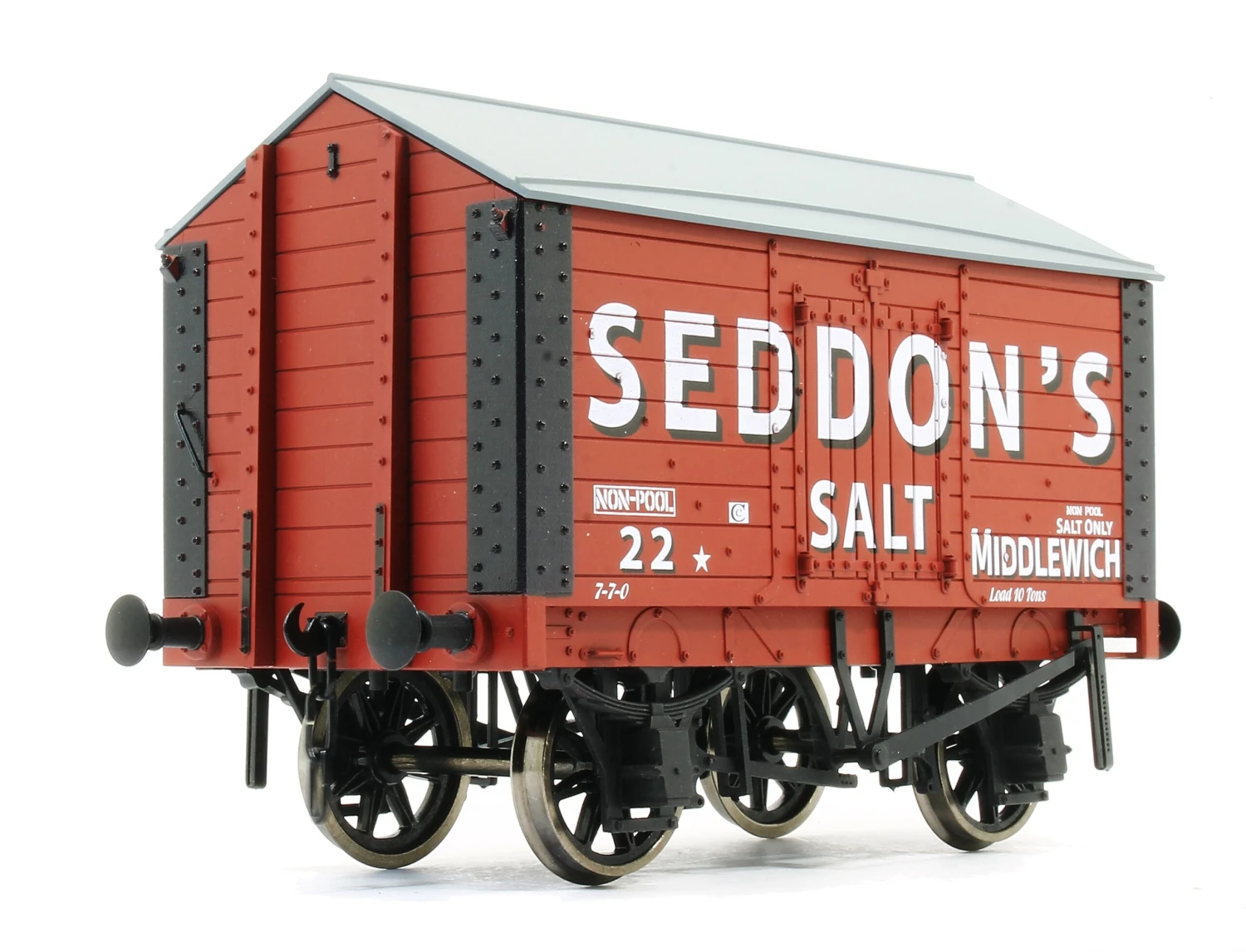 Once processed, the salt had to be kept dry and was transported in bags in high sided wagons with weather proof, usually pitched roofs. Private owner wagons for salt were common and where the salt was for table use, the vans used were often elaborately decorated with the suppliers branding. Salt wagons were in use commonly right up to the 1970s and several are now in preservation.