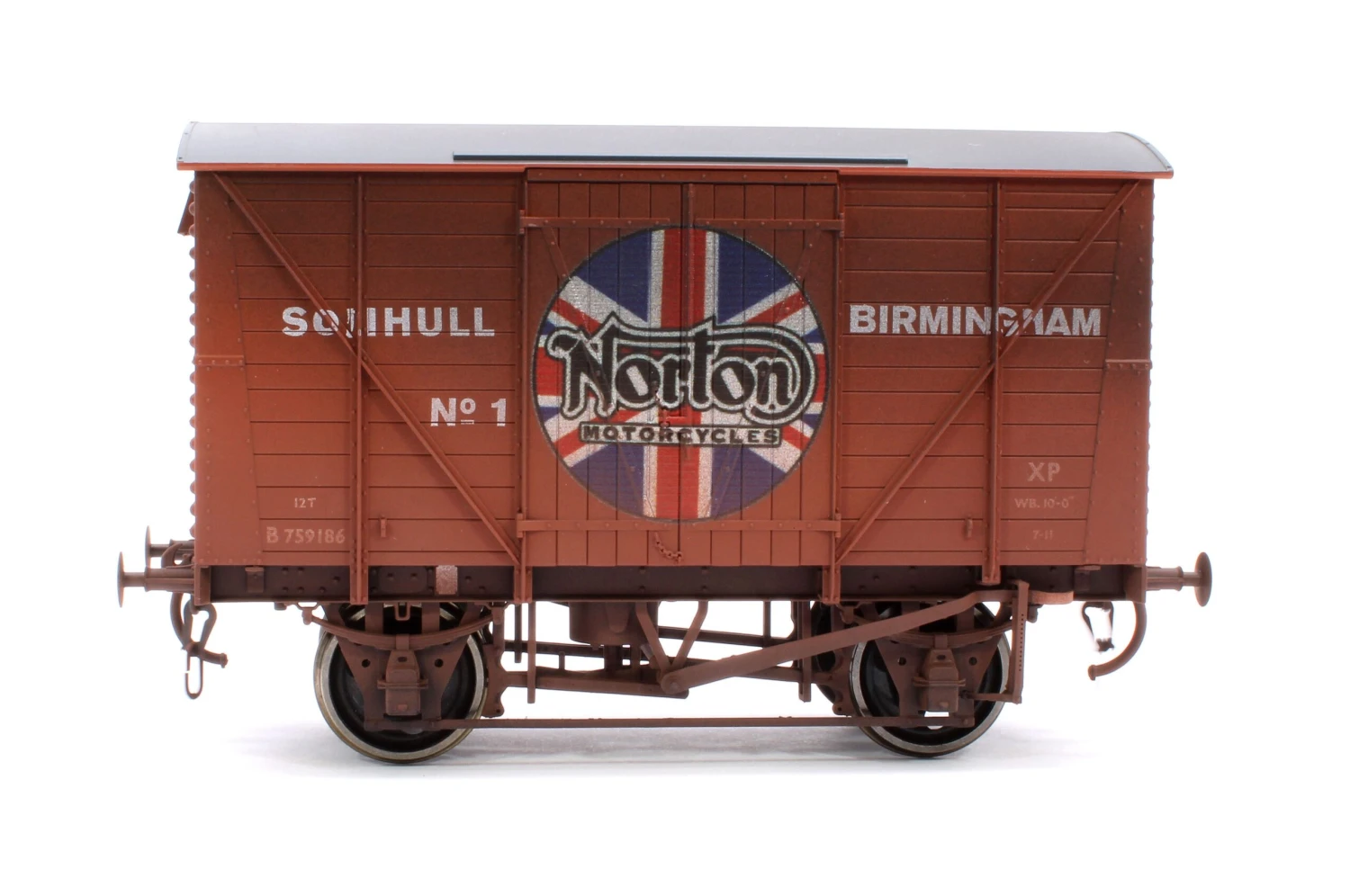 1:43 Scale Standard Planked Van Wagon decorated in Norton livery. This model features lots of expertly applied details as based on the prototype, a high level of body detail and excellent running characteristics.
