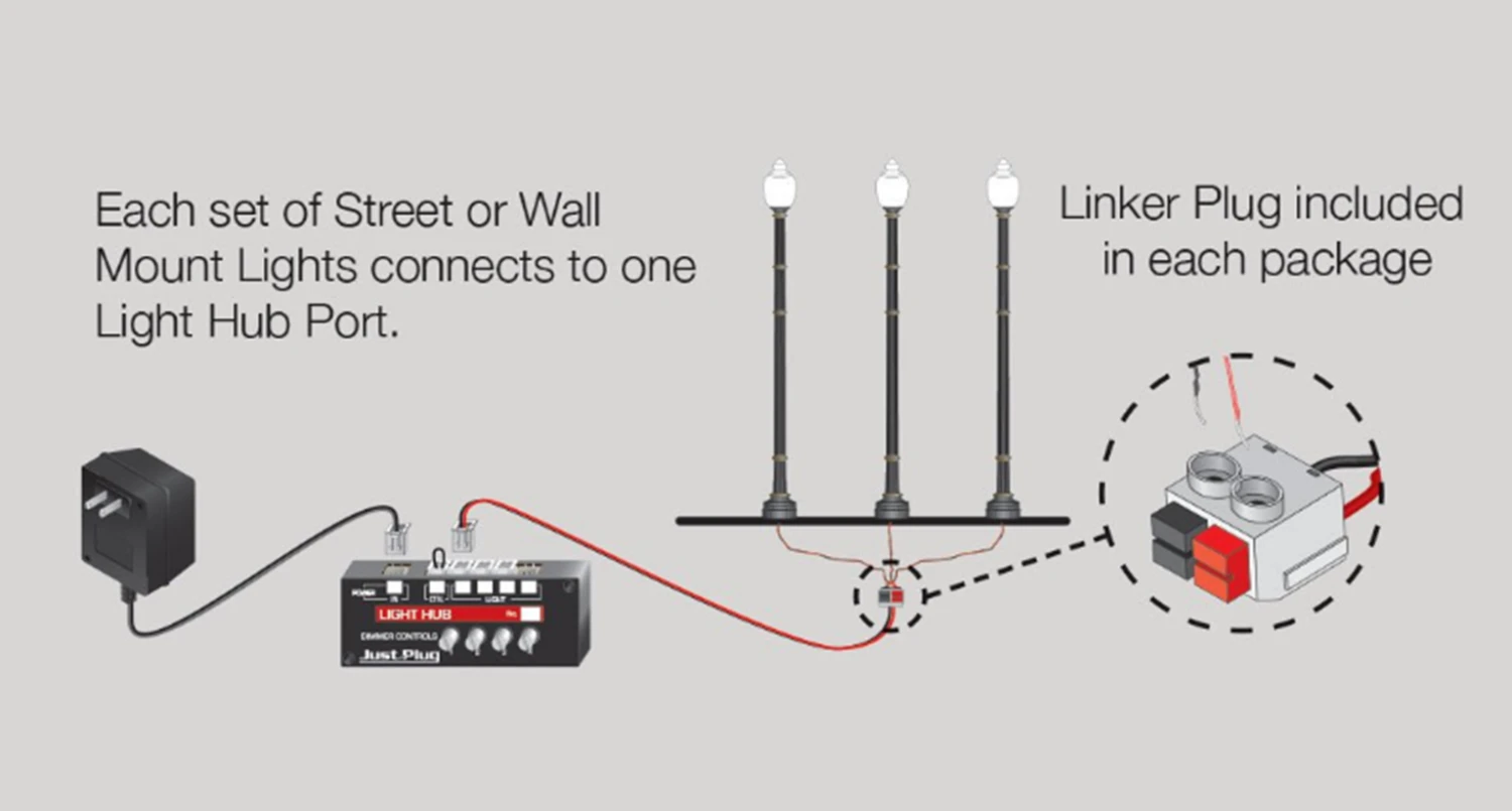 - 2 Warm White LED Street Lights with 36″ (91.4 cm) wire