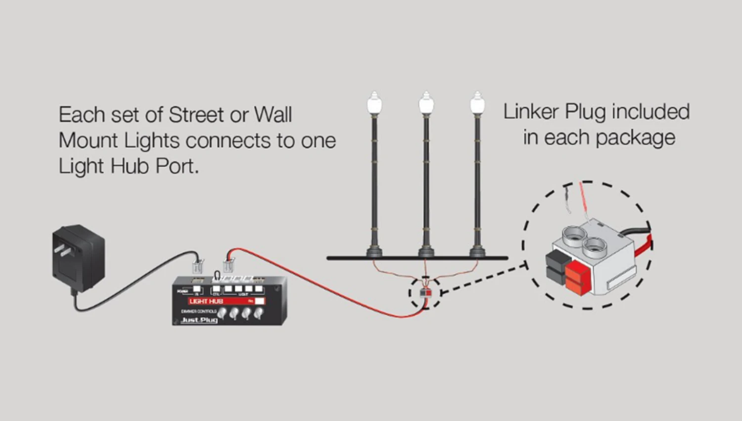 - 2 Warm White LED Street Lights with 36″ (91.4 cm) wire